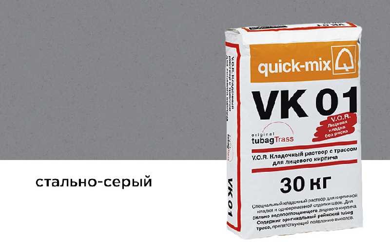 • раствор VK 01 - специальная сухая смесь для кладки сильно водопоглощающего лицевого кирпича (или камня) с водопоглощением 8-10%.