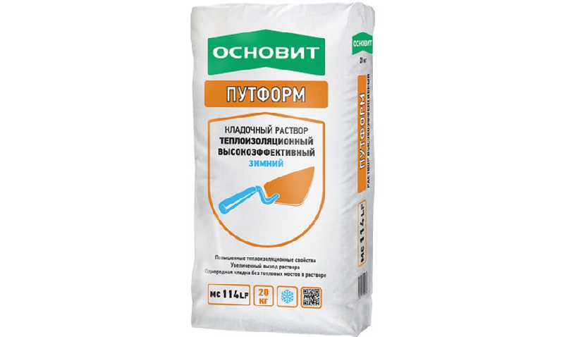 Зимний высокоэффективный теплоизоляционный кладочный раствор ОСНОВИТ ПУТФОРМ MC114 LF зимний предназначен для кладки стен из материалов с повышенными теплоизоляционными свойствами, а именно из лёгких пустотелых керамических блоков и блоков из бетона на пористых заполнителях при температуре окружающей среды и основания от -10 до + 10°С.